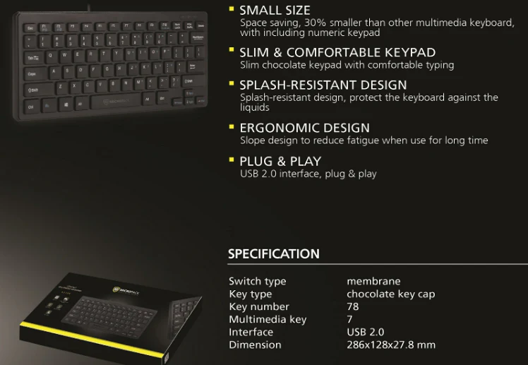 Experience the perfect blend of style, functionality, and functionality with the Micropack K2208 Wired USB Mini Keyboard. Designed for those who value space and efficiency, this compact keyboard is 30% smaller than traditional multimedia keyboards, making it an ideal choice for any work environment, be it home, office, or on the go.